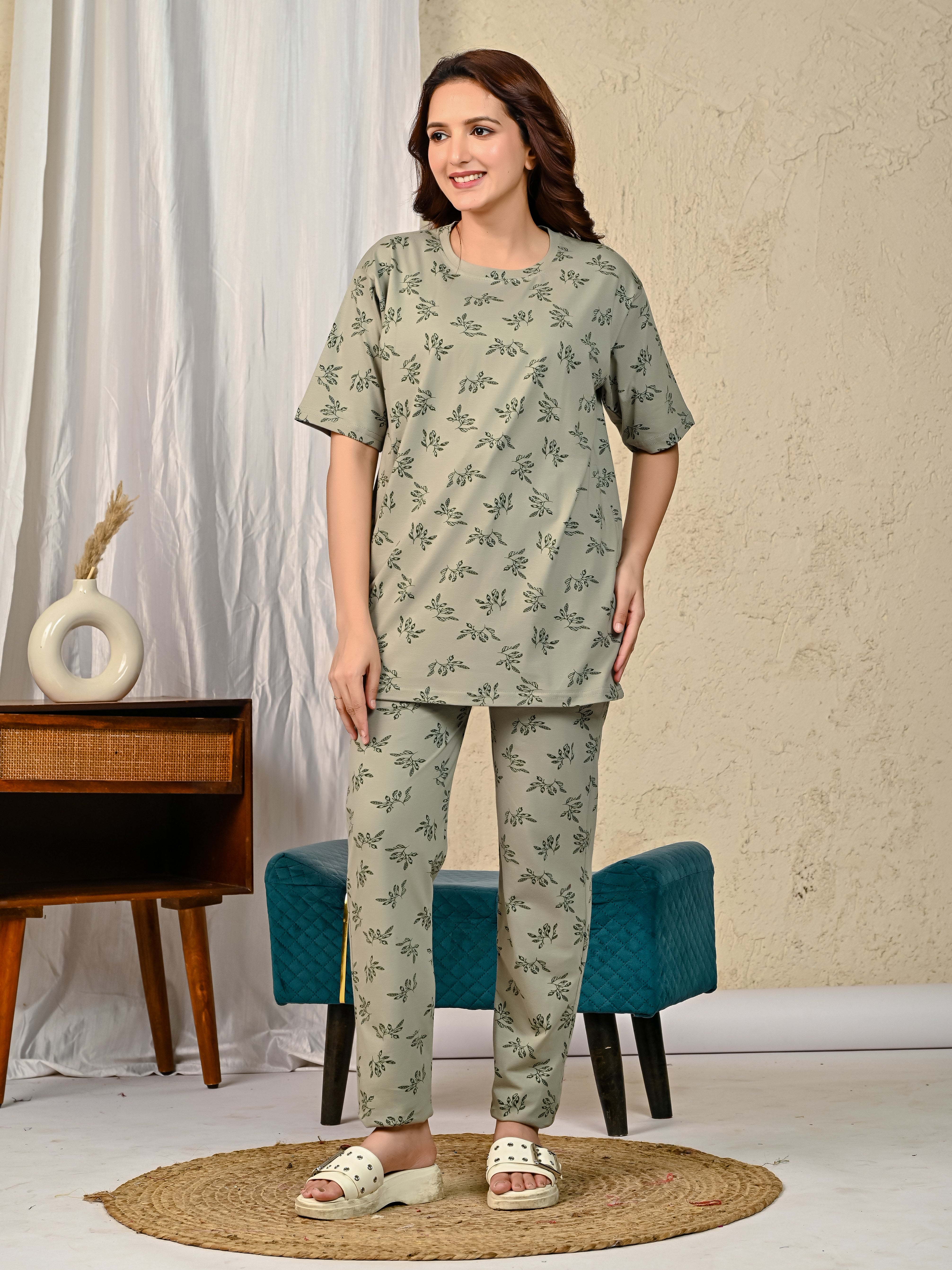 Green Printed Night suit set with Pajama